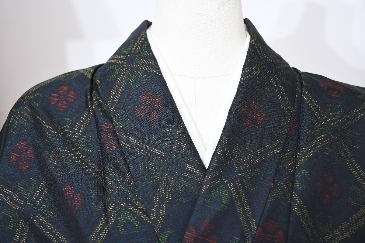 > 大島紬 花菱文様 正絹 身丈160cm 裄丈69cm ★着物 pb-3246 桜庭呉服店
