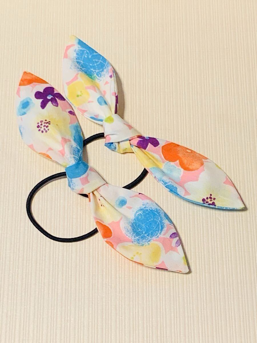 - ヘアゴム( D-71)うさみみ/リボン/花柄/ハンドメイド/2個セット/ヘアアクセサリー