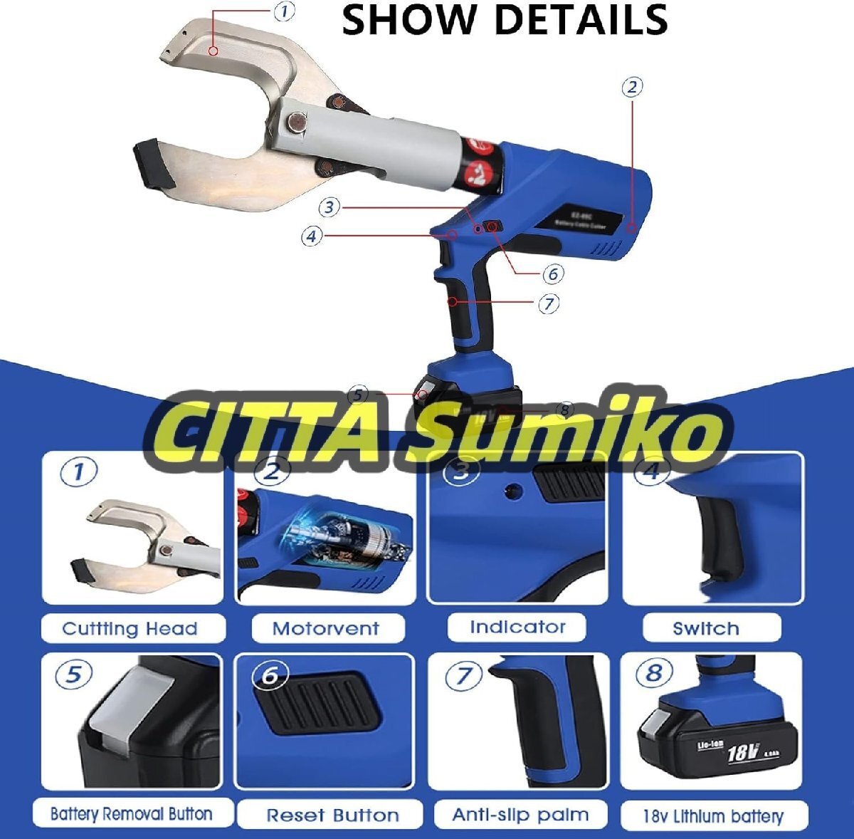 - バッテリーケーブルカッター 油圧ケーブルはさみ、電線カッター、30-135mm 銅 18V-4.0Ah バッテリー EZ-30C