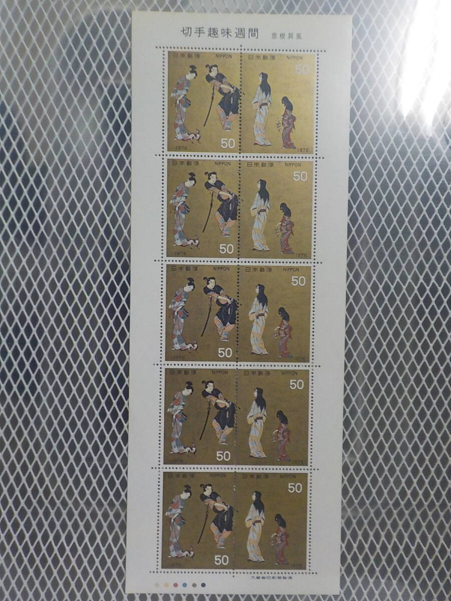- 切手趣味週間 1976年 彦根屏風 / 50円切手 5シート 未使用