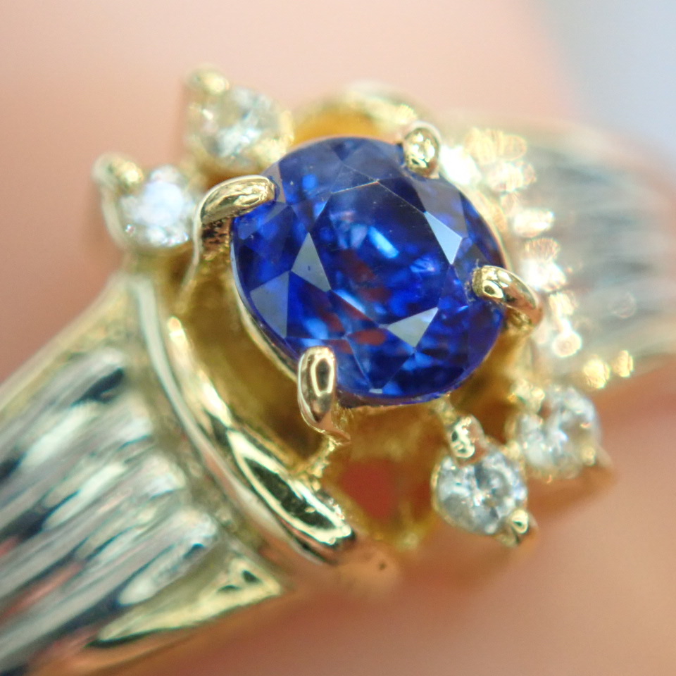 - ■K18/Pt900サファイアリング■金&プラチナ コンビ■ダイヤモンド■指輪■中古磨き仕上げ■