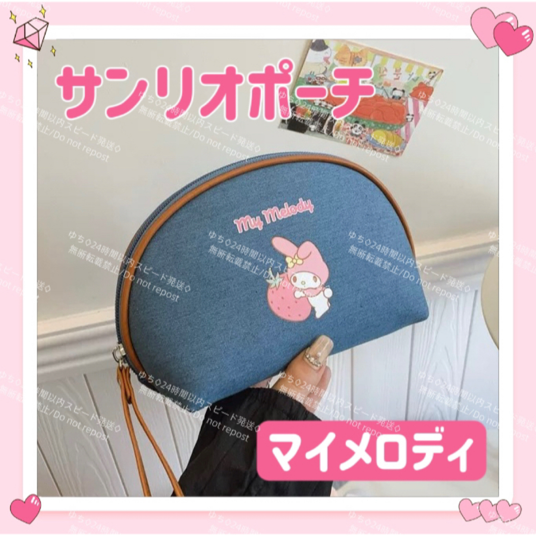 - 海外限定 サンリオ デニム ポーチ 多機能 大容量 メイク 化粧 トラベル 小物入れ 可愛い マイメロディ