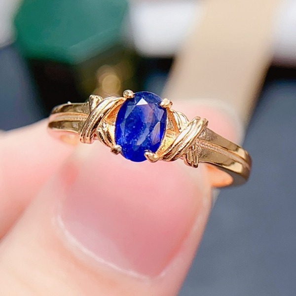 女性のためのナチュラルサファイアリング、4×6mm 、本物の925スターリングシルバー、天然宝石、高級ジュエリー