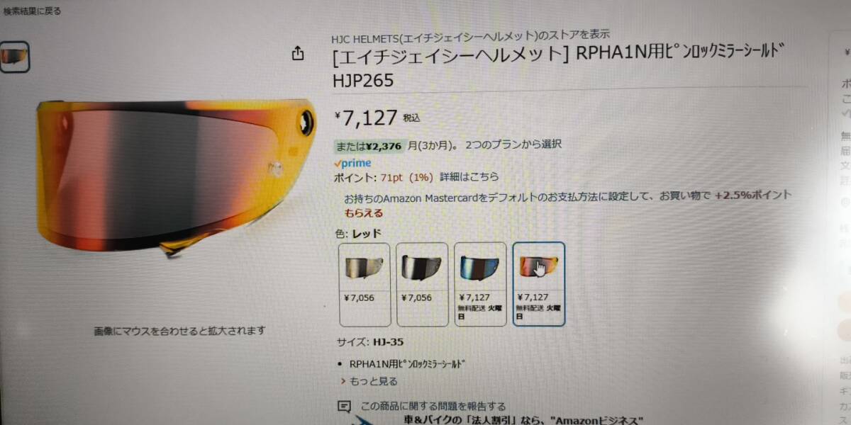 - ★新品 即決 HJCヘルメット RPHA1N用 ピンロックミラーシールド HJP265 ゴールド 室内試着のみ