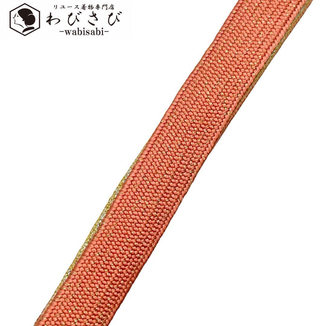 > 和装小物 帯締め 正絹 高麗組 平組紐 組紐 金糸 薄紅色 C-5521 着物 きもの kimono 和服 和装 中古 リサイクル着物 【送料無料】