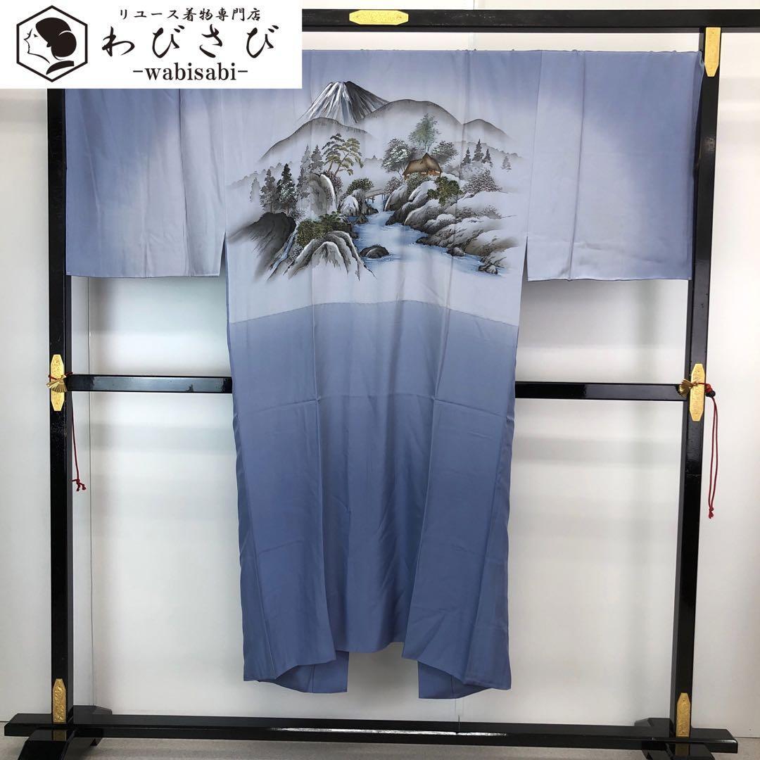 縹色のお色味に遠山風景模様の柄裄が素敵なデザインのお品でございます。
