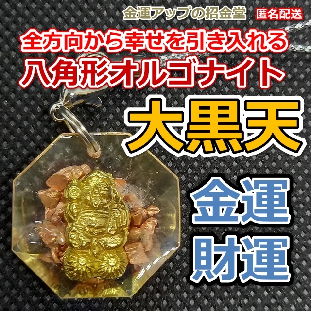 - 全方向から幸せを引き入れる八角形オルゴナイトストラップ大黒天(だいこくてん)様【金運アップの招金堂】金運アップお守り/金運財布 2213