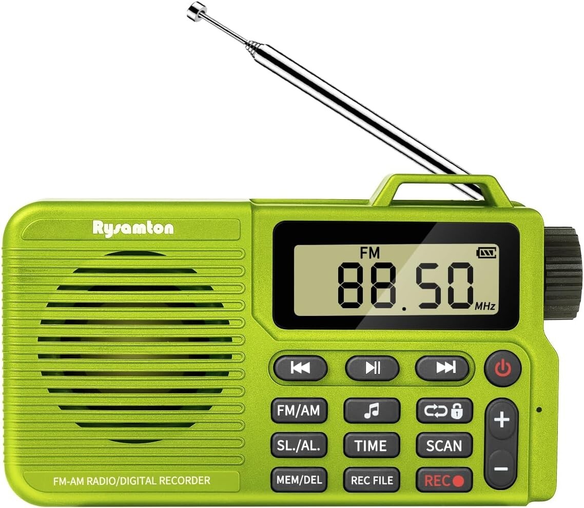 - FM/AM 高感度受信 多機能 小型ラジオ ワンタッチ録音 充電式 MP3再生可能録音 Bluetooth機能 日本語説明書付き(黄緑)