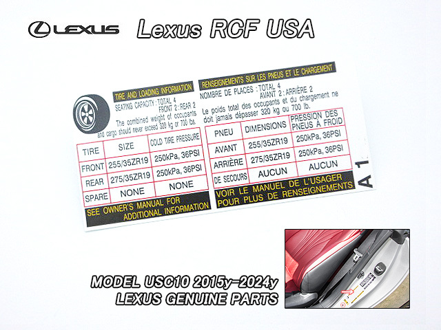 > レクサスRCF/LEXUS/USC10純正USラベルTire.Loading.Info(19inc)/USDM北米仕様C10系RC-FコーションUSAステッカー海外タイヤ空気圧シール
