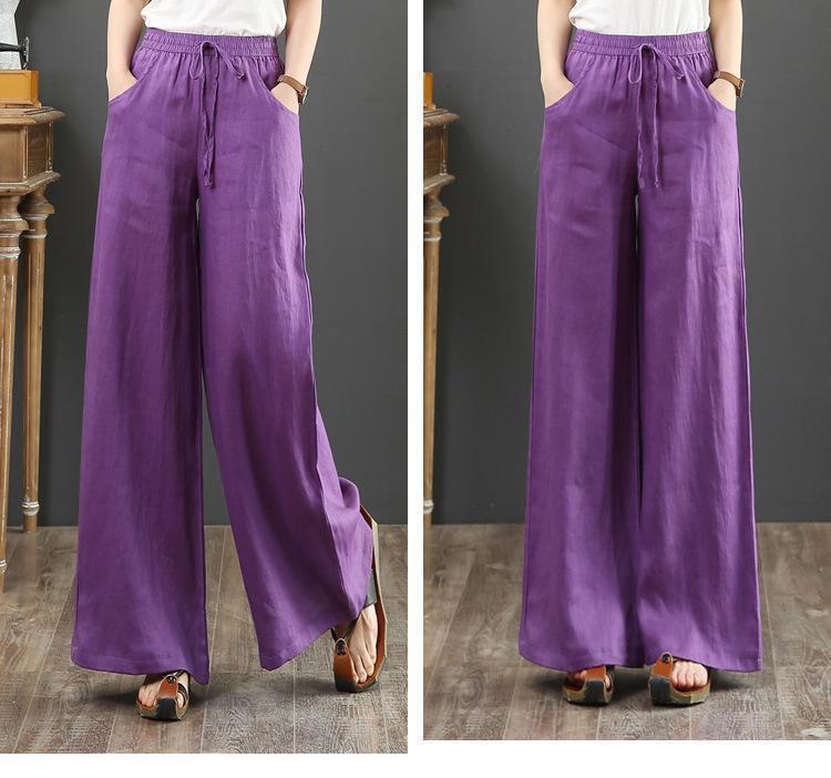 - 【パープル★L】ワイドパンツ レディース ストレートパンツ 綿 麻 リネン