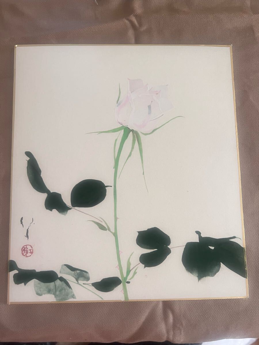 - ◆ 複製画 大塚巧藝社 色紙画 川端龍子 川端龍子 「1輪のバラの花」 ◆B-2264
