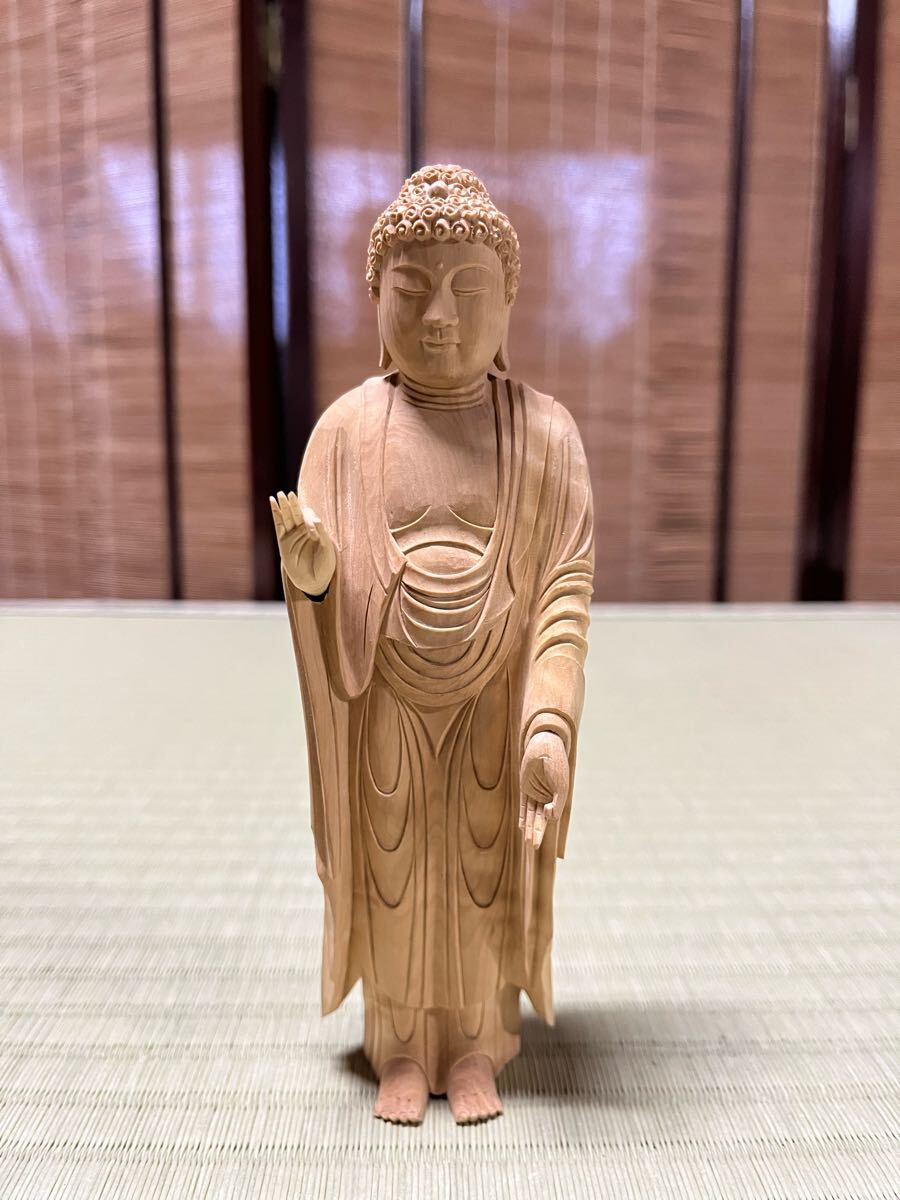 - 阿弥陀如来 仏像 木彫 仏教美術 彫刻 天然木 置物 仏壇