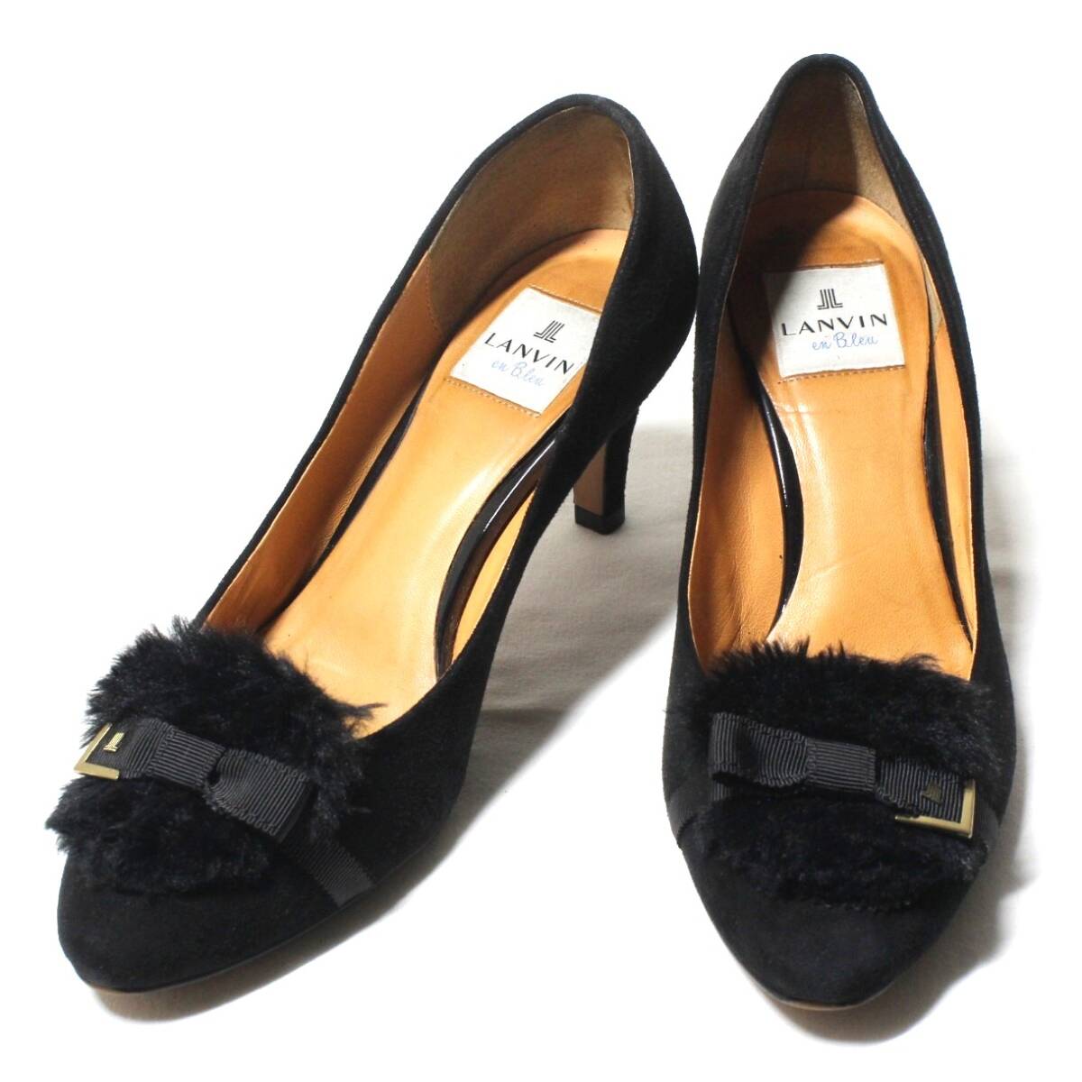 > 05【美品】ランバンオンブルー パンプス 23 1/2 ブラック 黒 23.5 ★トップリフトは新品交換済み★ リボン tqe LANVIN en Bleu 日本製