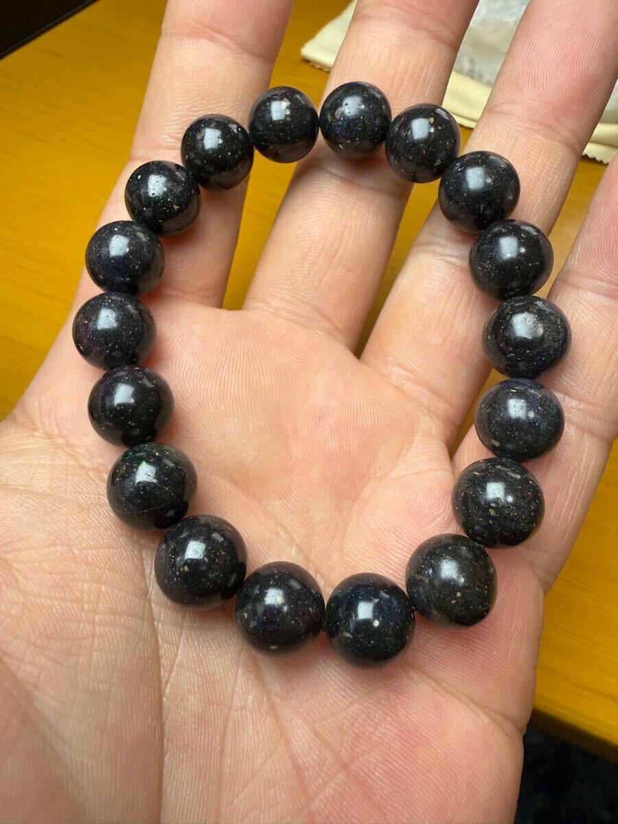 - 人気の高級石を特売! オーストラリア産ブラックオパールのブレスレット 11㎜玉で遊色たっぷりで綺麗
