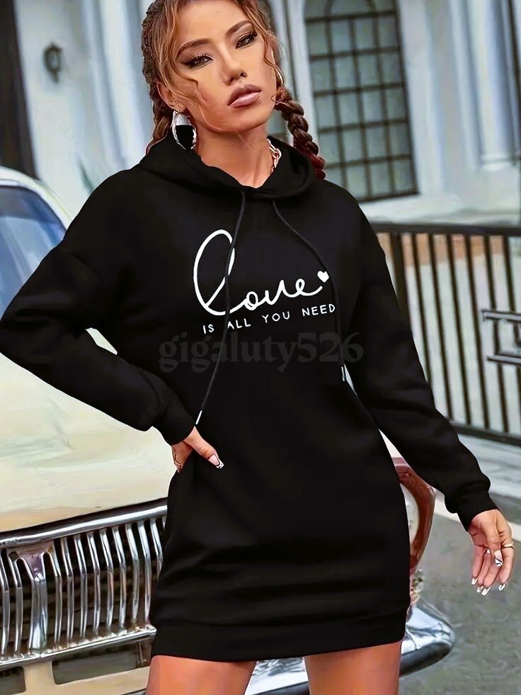 - 【送料無料】レディース・ファッションフード付きスエットドレス(カラー:ブラック/サイズ:M(JP-XL)