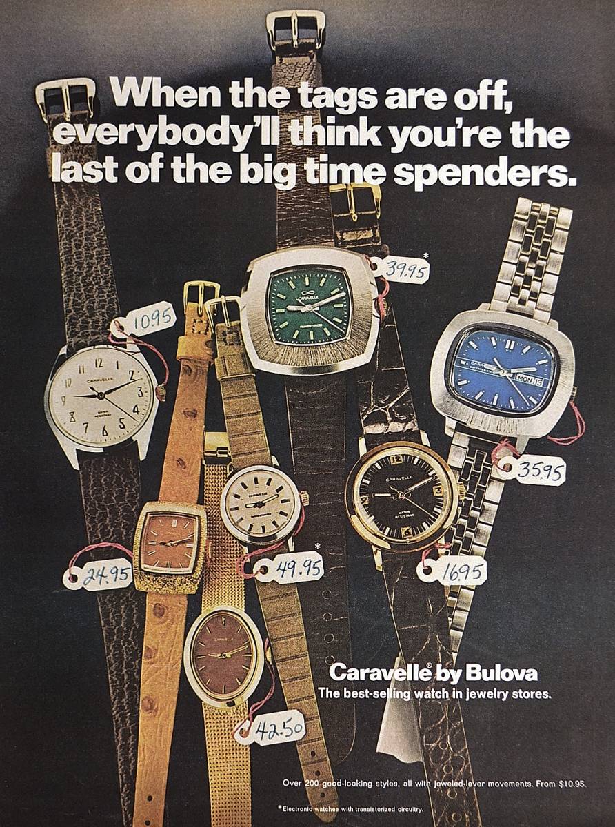 - 稀少・時計広告!1970年代ブローバ 時計広告/Bulova Caravelle Watch/Q
