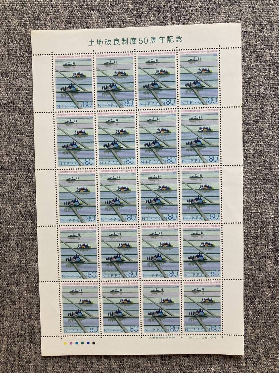 - ★未使用 土地改良制度 50周年記念 初夏の水田 イラストレーター 黒井健 1999年 平成11年 切手シート 80円 20枚 日本郵便