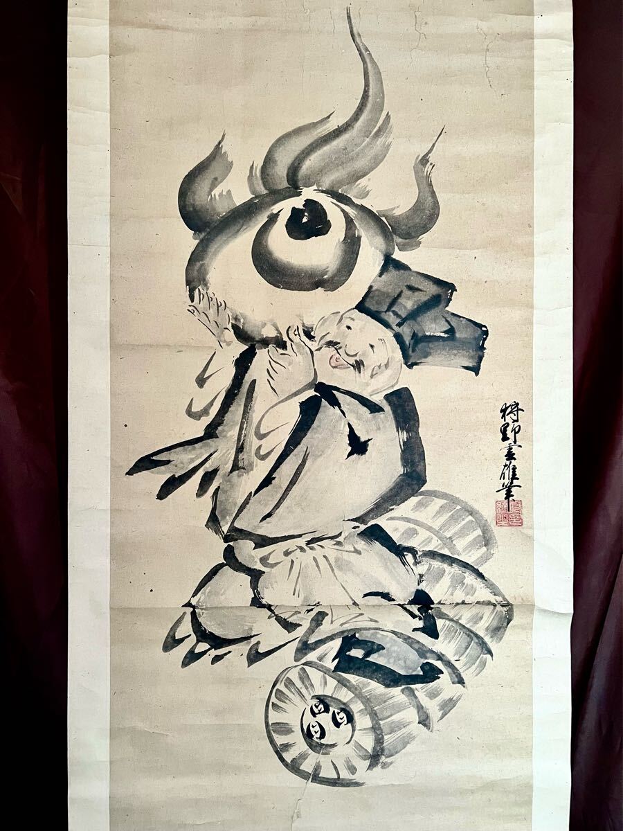 - 【真作】【S8】狩野雲雄「大黒天宝珠之図」紙本 肉筆 仏画 仏教美術 縁起 日本画 絵画 掛軸 狩野派