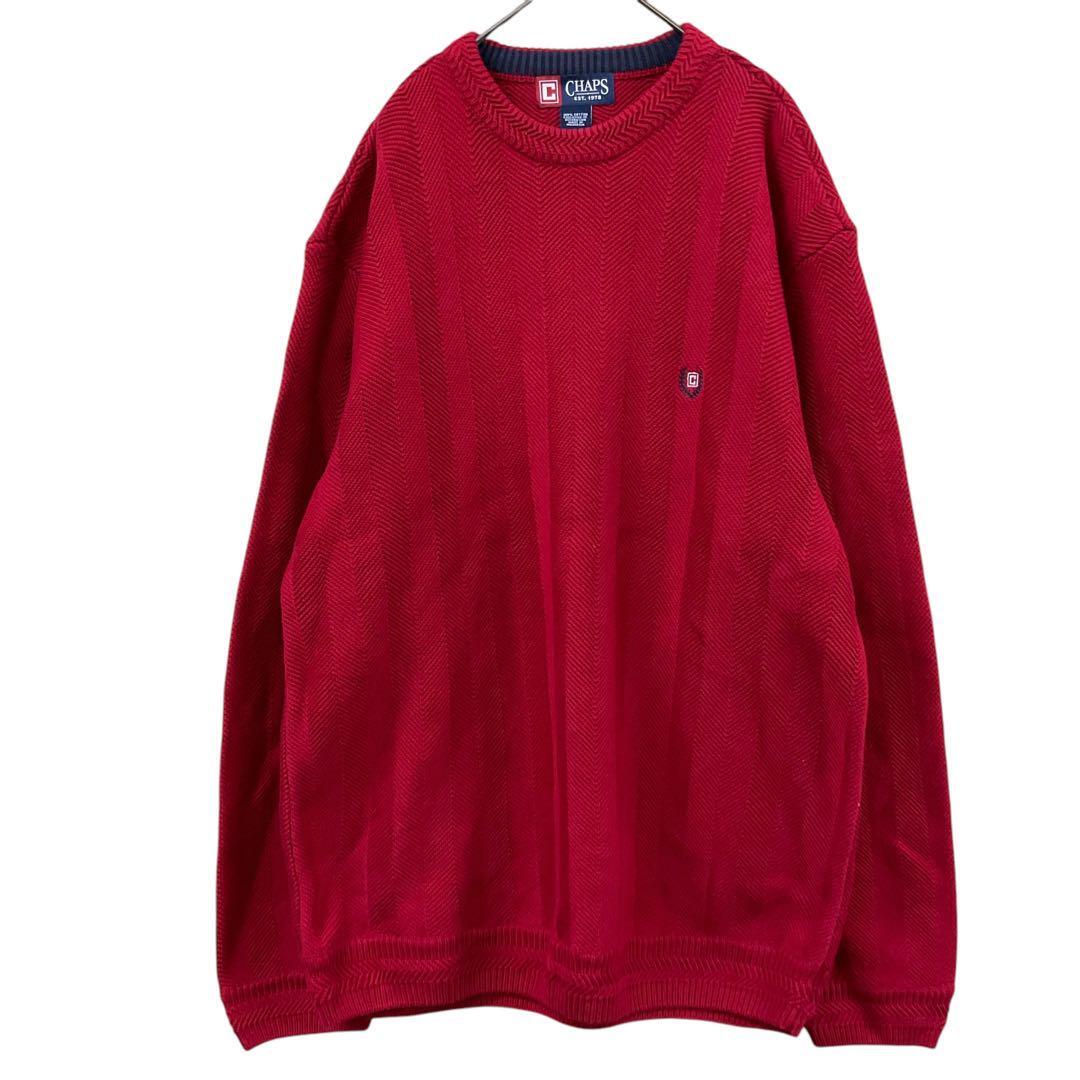 - チャップス メンズコットンニットセーター ワンポイントロゴ L 赤 【2405】