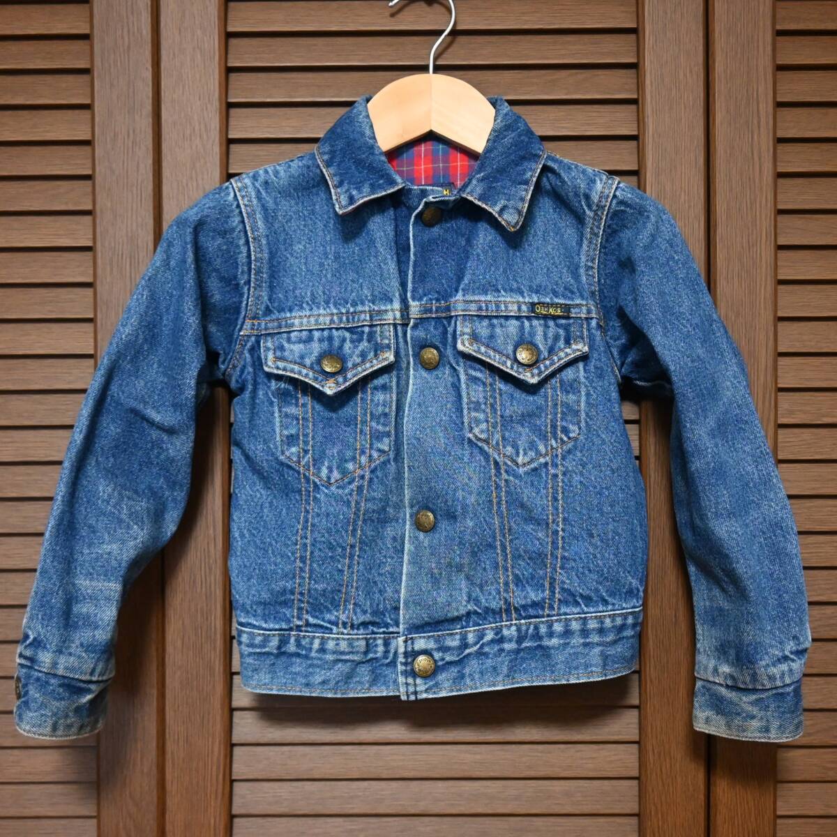 - 【キッズ】 80s OshKosh オシュコシュ Gジャン 裏地チェック USA製 ビンテージ OSHKOSH B'gosh デニムジャケット size6