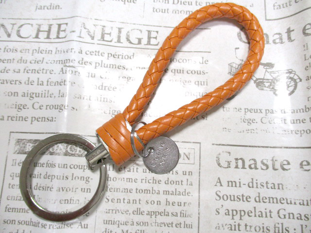 - 新品 キーホルダー キーリング メンズ レディース ハンドメイド PUレザー オレンジ