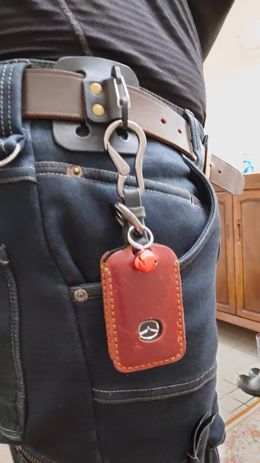 - 革製ベルトホルダー☆ベルトループ☆カルビナ仕様☆ハンドメイド一品モノ ◎発送クリックポスト