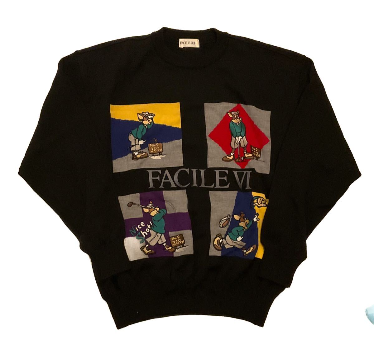 - 80年代 日本製 Facil sei FACILEVI クルーネック セーター 長袖 刺繍 トップス ゴルフ Lサイズ