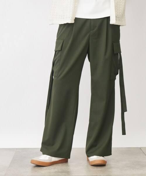 > THE SHOP TK ザ ショップ ティーケー TAKEO KIKUCHI タケオキクチ パラシュート カーゴパンツ カーキ グリーン 緑 L カジュアル スラックス
