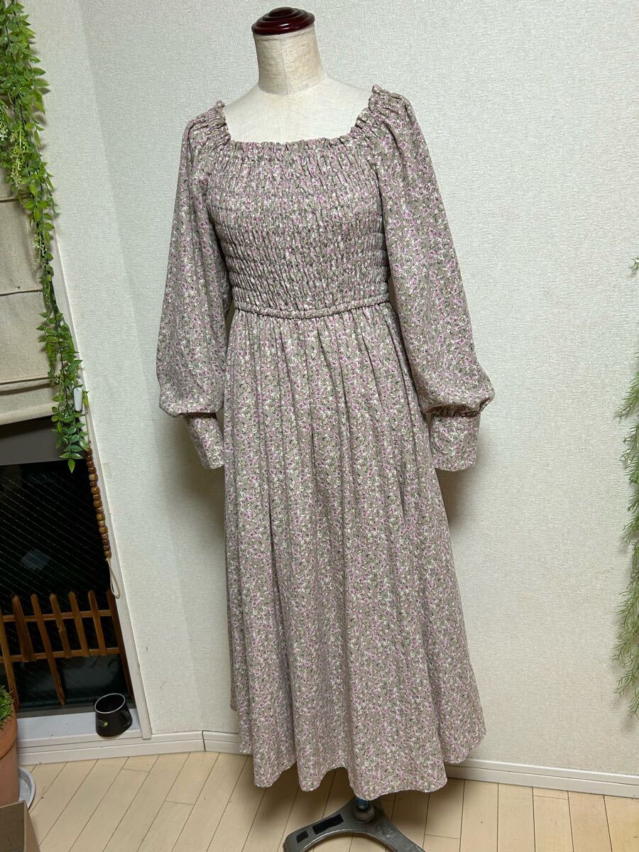 > 【 NICE CLAUP★ナイスクラップ】小花柄・後ろリボン結びマキシ丈ワンピース・Fサイズ