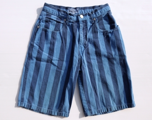 > ◆ 90's USA製 GUESS ゲス ショートパンツ ショーツ W26 青ストライプ/ビンテージ オールド レトロ アメリカ古着 短パン レディース