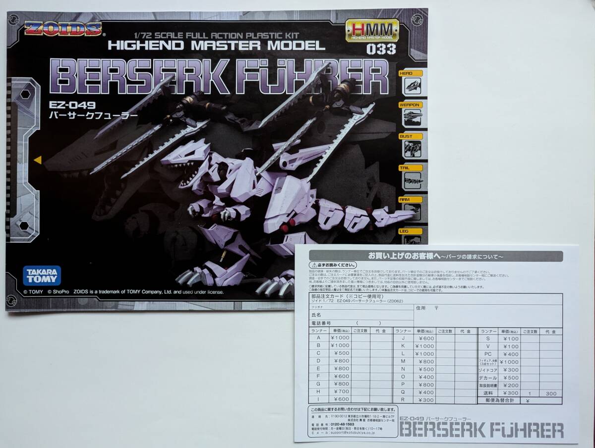 - ■即決■説明書のみ タカラトミー ゾイド 1/72 EZ-049 バーサークフューラー プラモデル説明書のみ