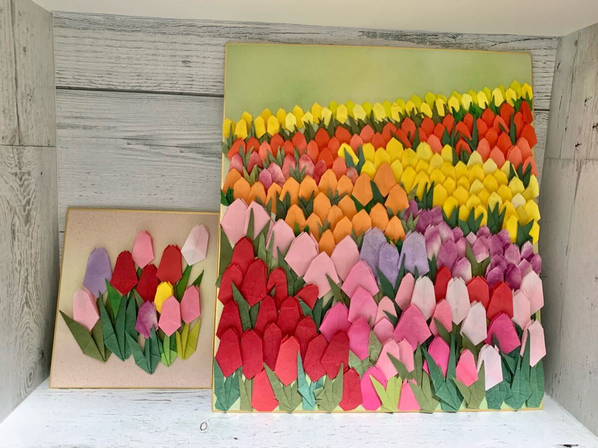 - 千代紙 折り紙アート チューリップ 色紙 2枚 春 花びら 四季 植物 花 飾り インテリア 玄関飾り 壁掛け 壁飾り 置物 折り紙