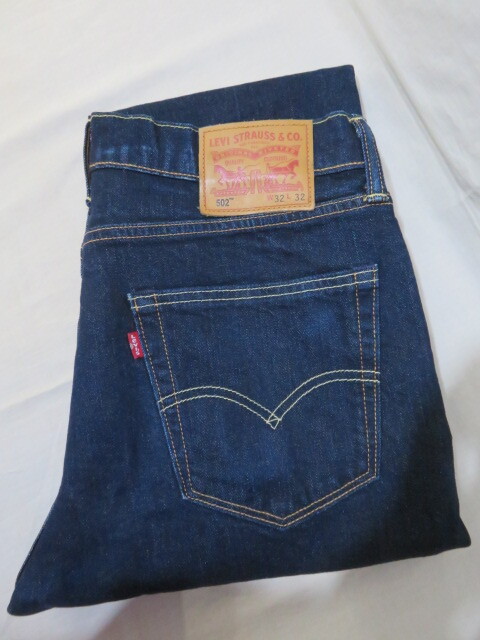 > ☆濃紺 Levi's 502 ストレッチデニムパンツ ジーンズ レギュラーテーパードシルエット 裾チェーン W32☆