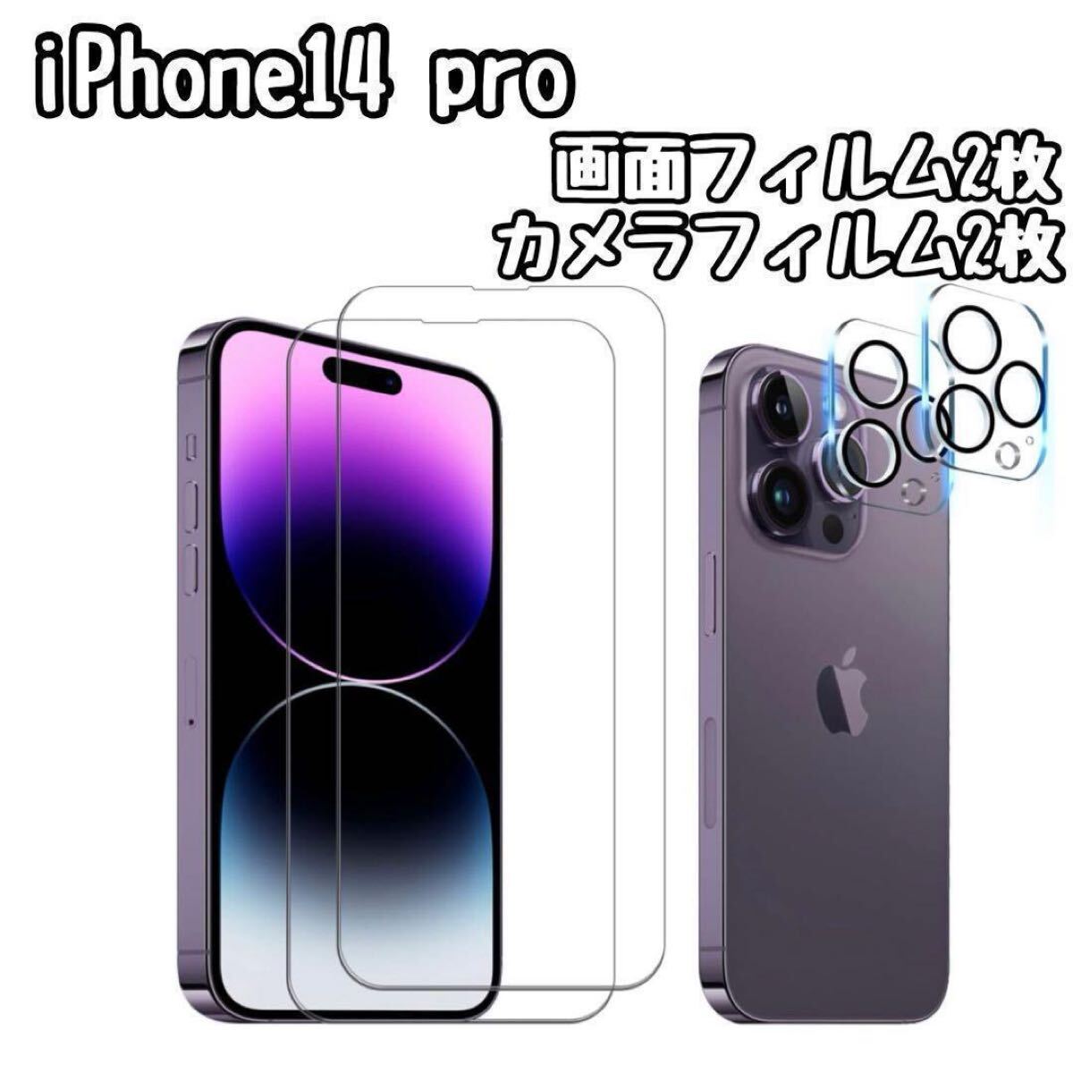 - iphone14 pro ガラスフィルム 2枚 カメラフィルム 2枚 フィルム