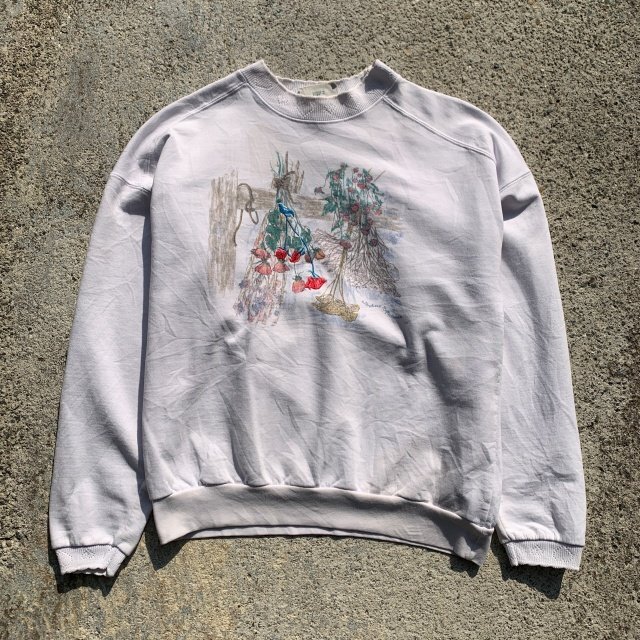 > 【レディース】NORTHERN 刺繍×プリントスウェット 白■ビンテージ オールド レトロ アメリカ古着 トレーナー アート 花柄 レース