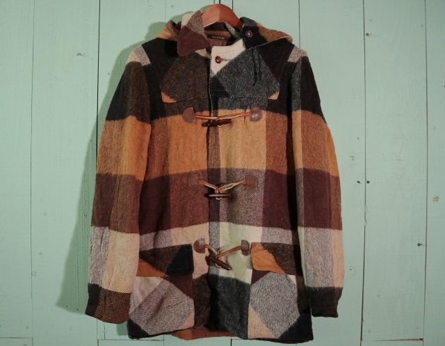 > ◆ 70's-80's CROYDON ウール ダッフルコート 34R(メンズXS-S相当)黄色チェック/ビンテージ オールド アメリカ古着 レトロ カナダ製