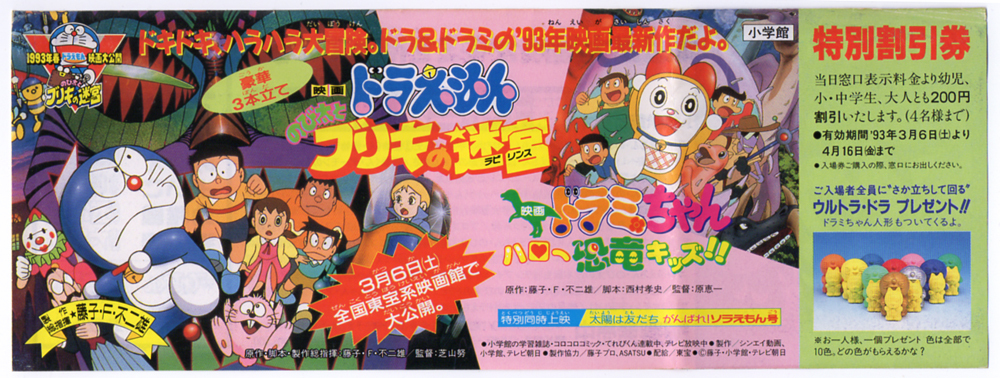 - ドラえもん ブリキの迷宮 映画特別割引券 3枚セット 東宝 1993 【周南地区店舗にて手渡し可】
