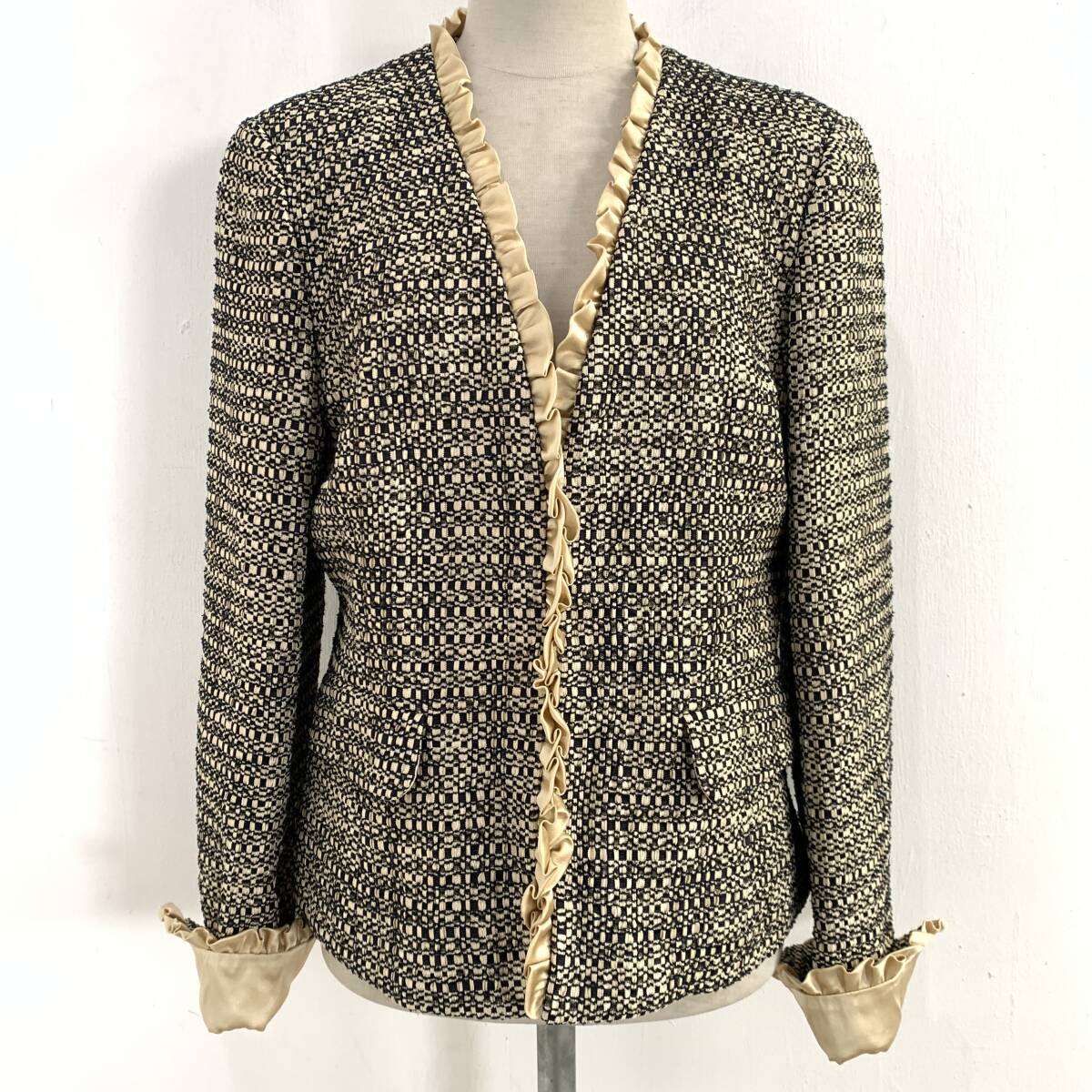 > ☆KRIZIA クリツィア イタリア製生地使用 ナイロン×綿 絹 総柄 ジャガード 編み込み ジャケット size42 ベージュ系【送料一律/同梱可能】M