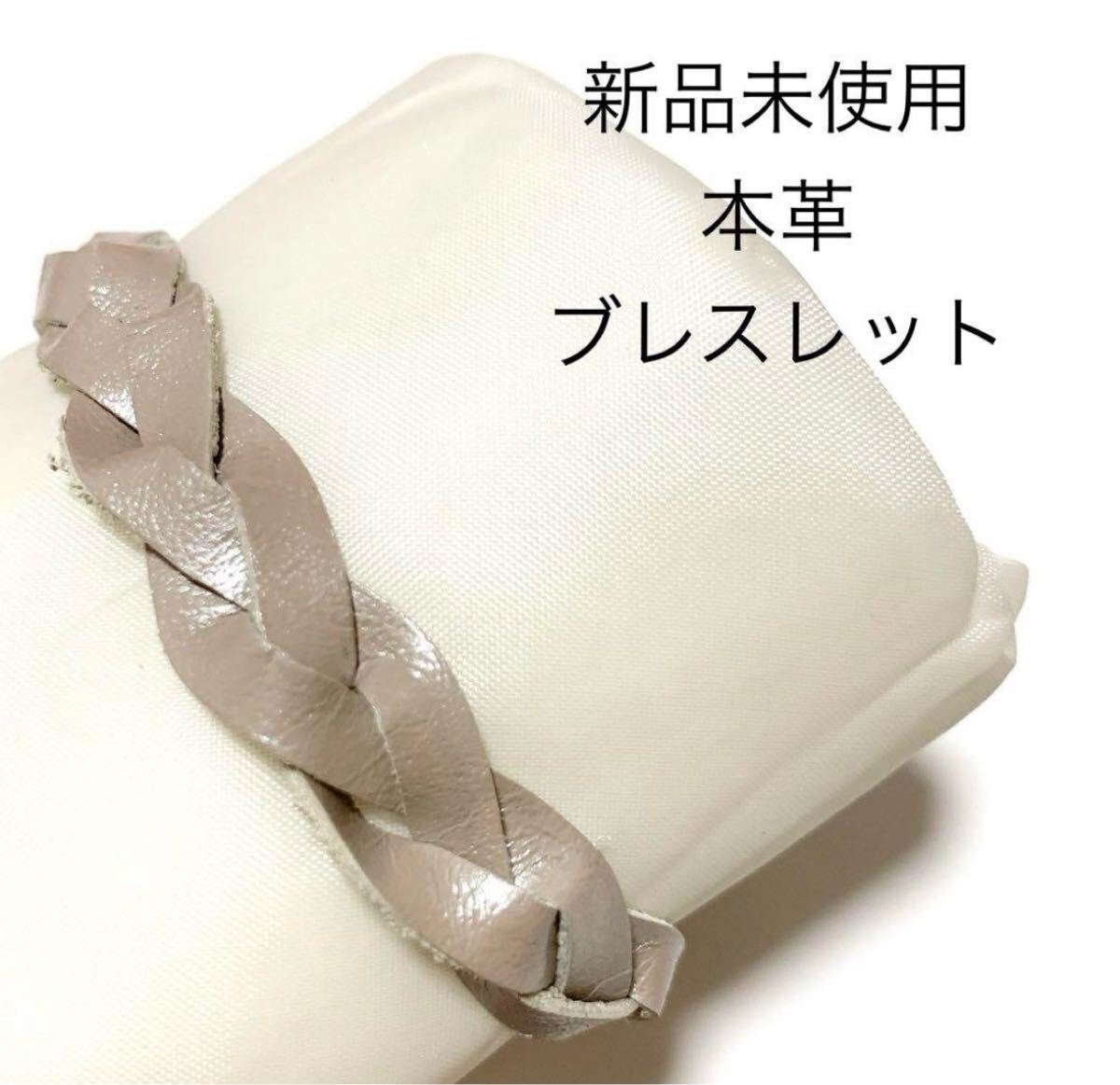 > 新品未使用 本革メッシュ編みブレスレット グレージュ レザー小物 レザークラフト アクセサリー バングル 革小物 レザーアクセサリー