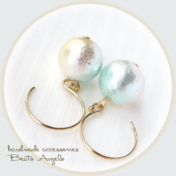 - ◇◇K14GF コットンパールのラウンドフックピアス(p-404)マスカット 一粒 10mm