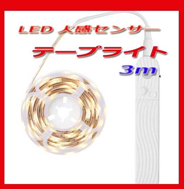 > ★★テープライト LED 人感センサーライト 屋外 USB式 防水 電池 リモコン 自動点灯 LEDライト 照明 部屋 3m 新品即決★