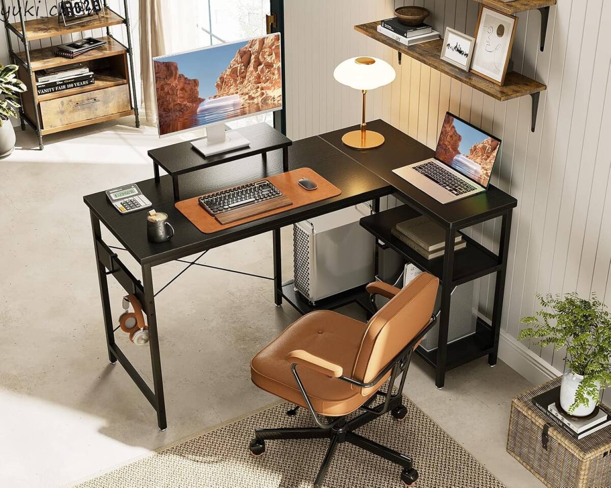 - パソコンデスク ブラック l字デスク 幅120cm ゲーミングデスク L字 コーナー机 ラック付き PCデスク 組立 在宅勤務 収納