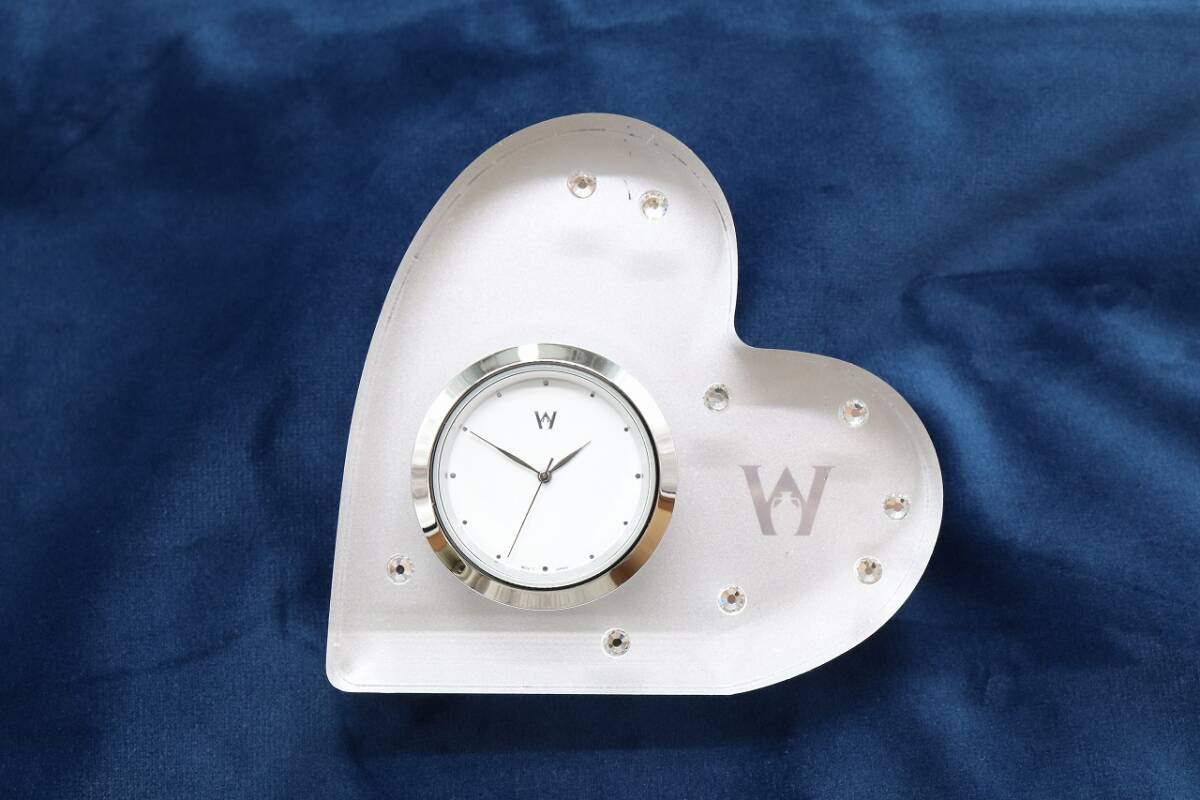 - 【W217-111】動作品 電池交換済 WEDGWOOD ウェッジウッド ハート形 アクリル クリア 置き時計【送料全国一律185円】