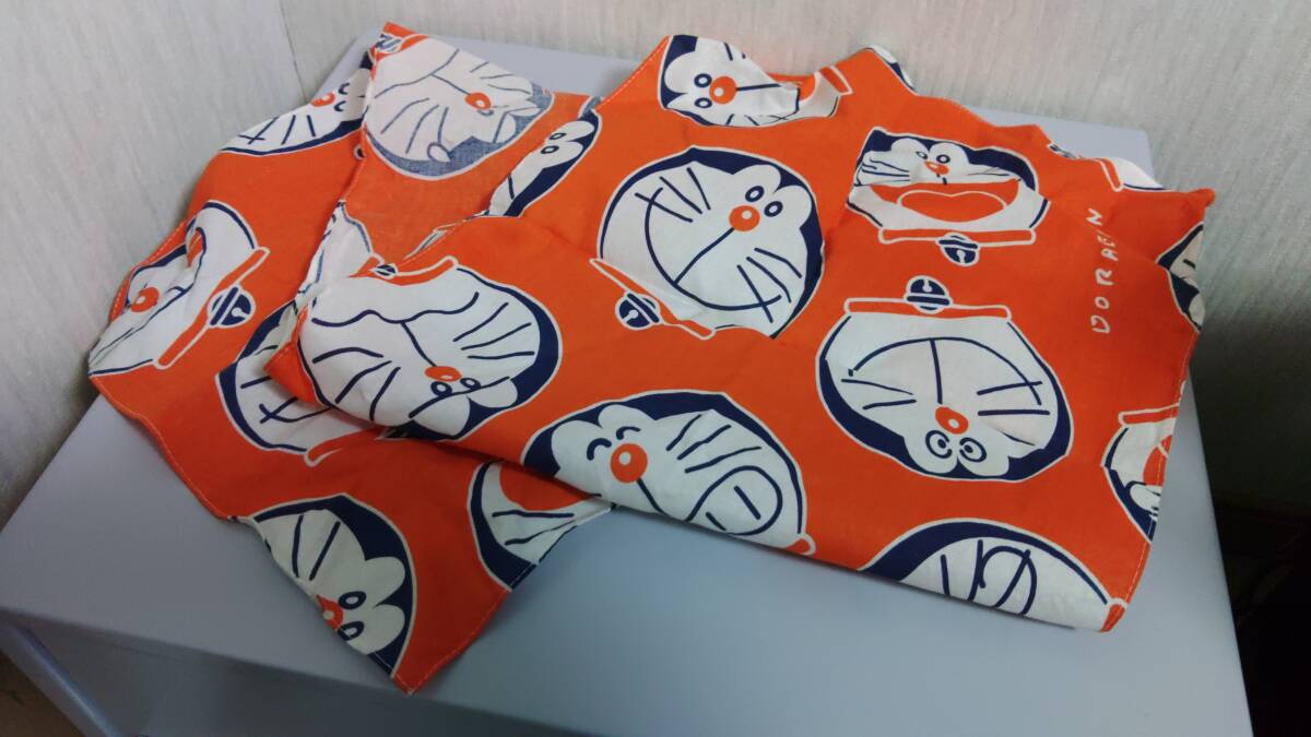 - ドラえもん てぬぐい 手拭い サントリー×ドラえもん 綿100% 非売品 縦30㎝×横87㎝ オレンジ系