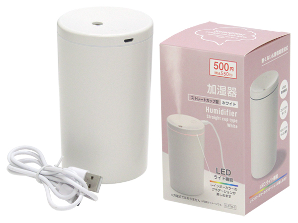 - 静音超音波式 加湿器 ストレートカップ型 LEDライト機能付き ホワイト