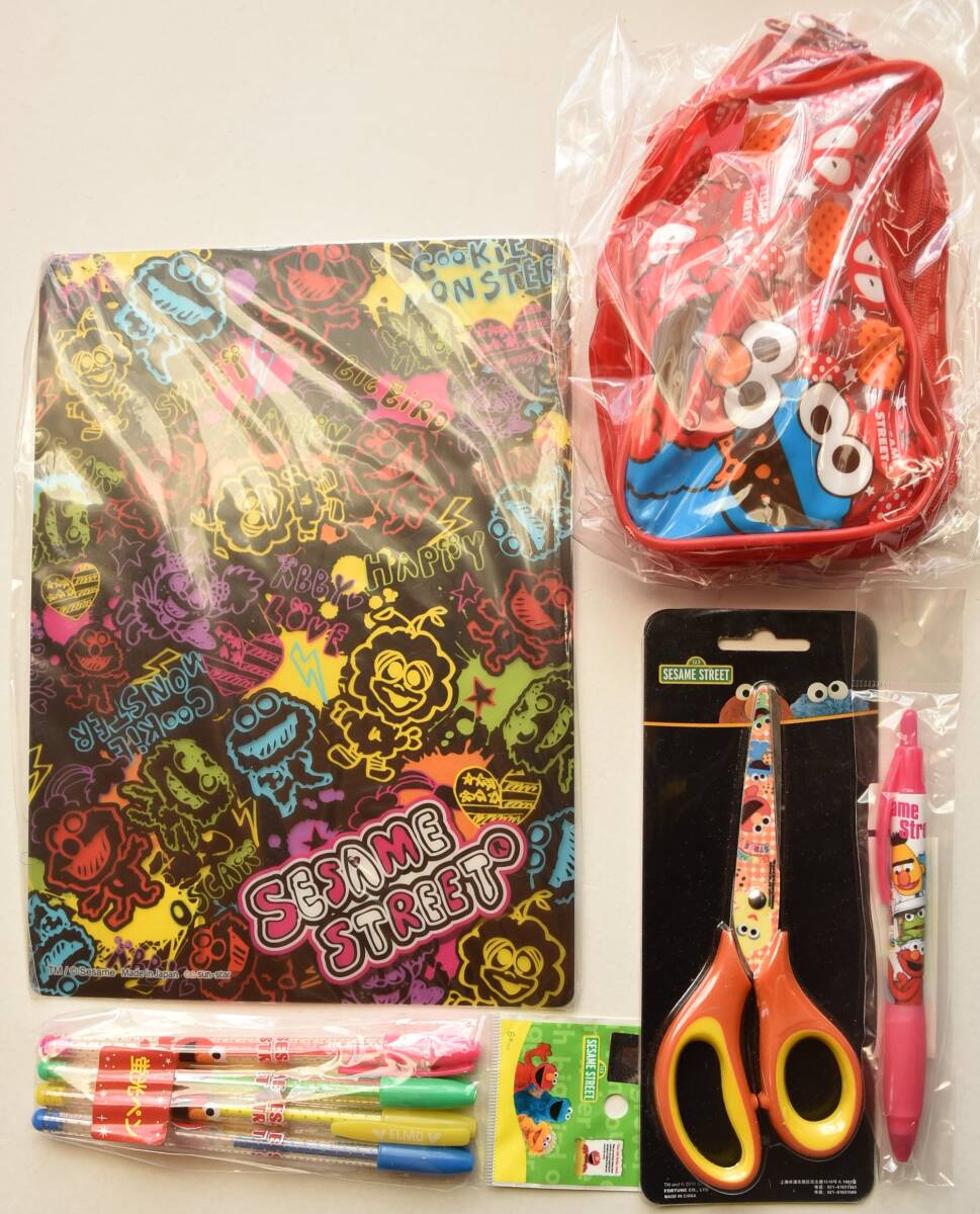 - セサミストリート 文具セット お泊りセットポーチ ハサミ ノート ペン 未使用品