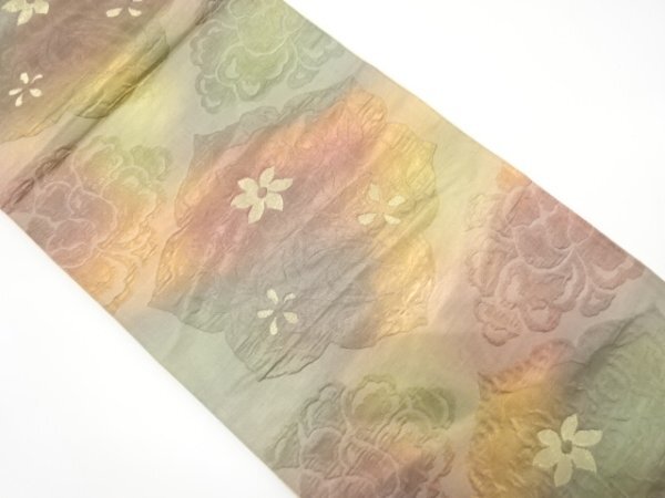 > ys7312091; 宗sou 花更紗模様織り出し 暈し袋帯(材料)【アンティーク】【着】