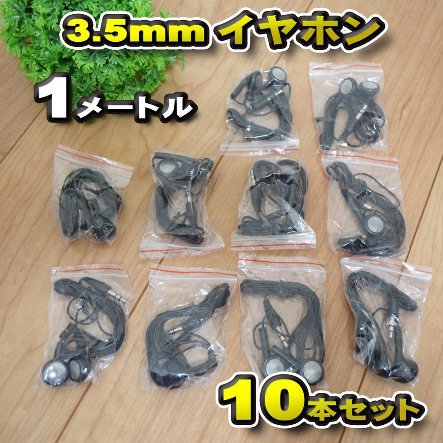 - 使い捨て 3.5mm イヤホン ジャック 1m 送料無料 【ブラック】 x 10本セット