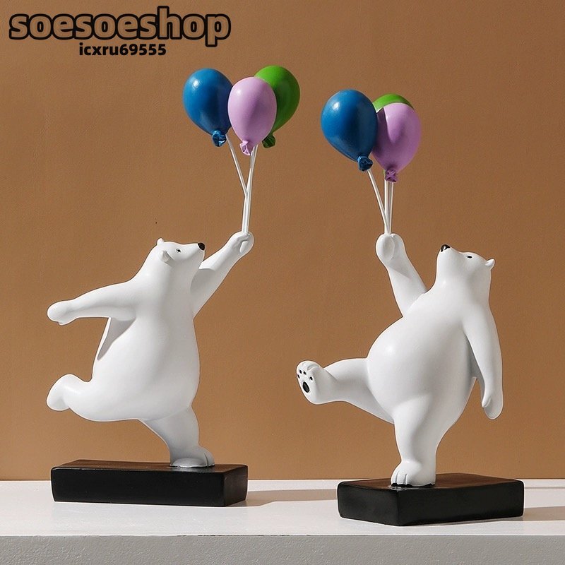 > バルーンベア 置物 2個1セット 樹脂 白熊 クマ 風船 装飾 動物 フィギュア おもちゃ 彫像 北欧 ディスプレイ インテリア ペア シンプル