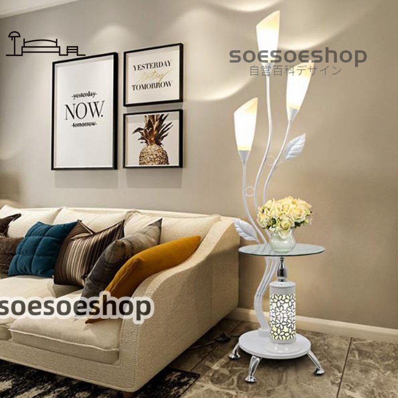 - ユリ フロアライト スタンドライト テーブル付き 照明器具 間接照明 LED ins風 北欧シンプル 間接照明 インテリア ホワイト